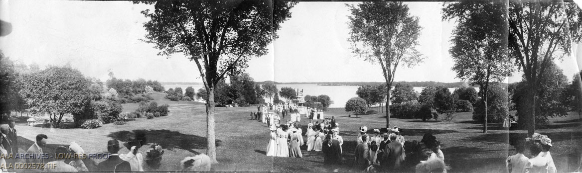 Panoramic of conference attendees at Waukesha during the 1901 ALA Annual Conference.
