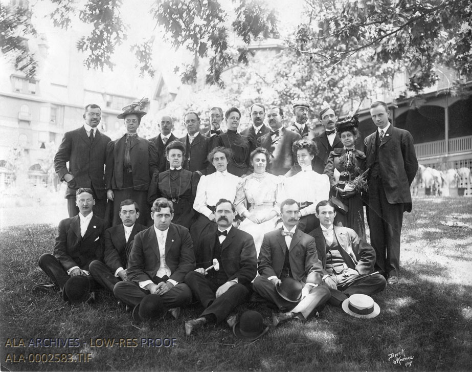 A group photograph of ALA conference attendees at the 1907 Annual Conference in Asheville, North Carolina.