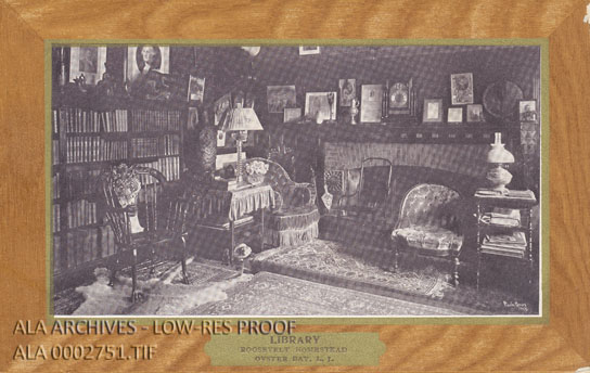 Postcard of the Roosevelt Homestead Library in Oyster Bay, Long Island, New York.
