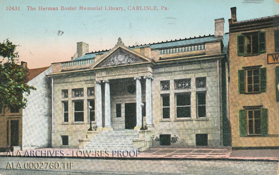 Postcard of the Herman Bosler Memorial Library in Carlisle, Pennsylvania.