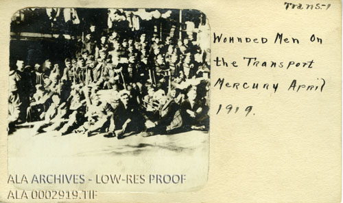 Caption on the side reads: "Wounded Men on the Transport Mercury April 1919."