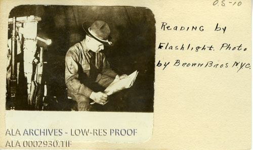 Soldier Reading by Flashlight | The American Library Association Archives