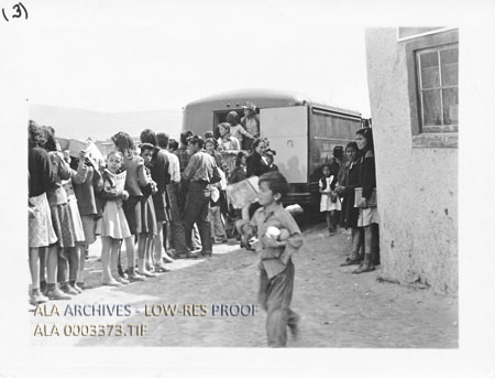 A bookmobile stop at Canon, Taos County, New Mexico. It was part of the Taos County Project (1940-1943).
