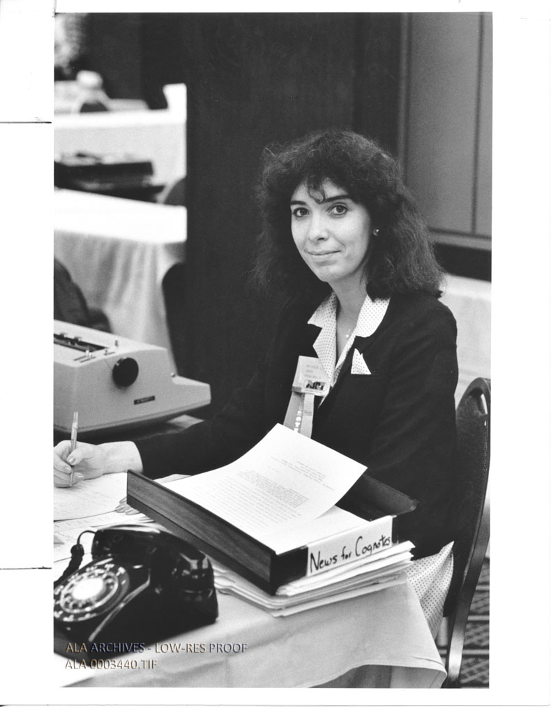 Mary Bride Mayer, an editor of the ALA/JMRT Cognotes, working at the 1981 San Francisco Annual Conference.