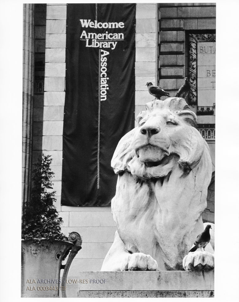 ALA banner hanging outside of the New York Public Library for the 1980 Annual Conference in New York City.