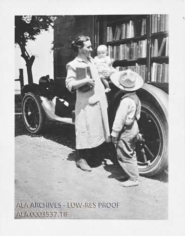 Patrons at the Washington County Hagerstown bookmobile, the first bookmobile in the United States.