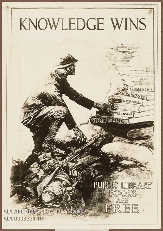 Copy of a poster by Dan Smith, which reads: Knowledge Wins Public Library Books are Free