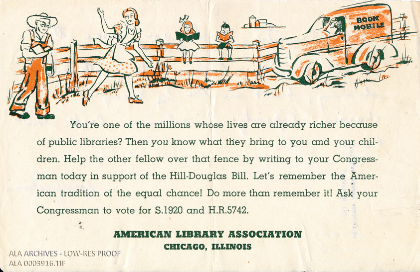 Hill-Douglas Bill Support Flyer | The American Library Association Archives