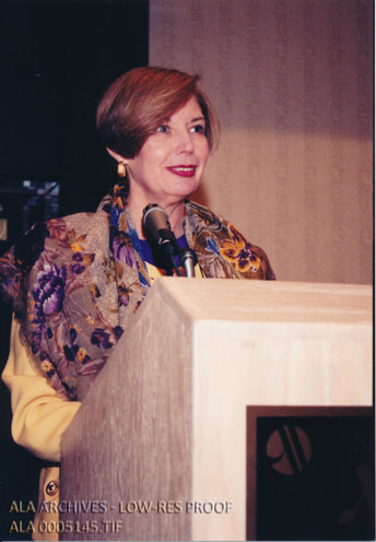 ALA President Sarah Ann Long speaking at the Martin Luther King, Jr. Holiday Observation and Sunrise Celebration at the 2000 ALA Midwinter Meeting in San Antonio.