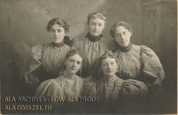 Upper row: Nancy May Pond, '96; Etheldred Abbot, '97; Myrtilla Avery, '95. Lower row: Elisabeth Parkhill Andrews, '97; Anne Seymour Ames, '97.