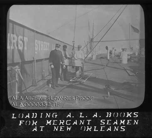 Loading A. L. A. Books for Merchant Seamen at New Orleans