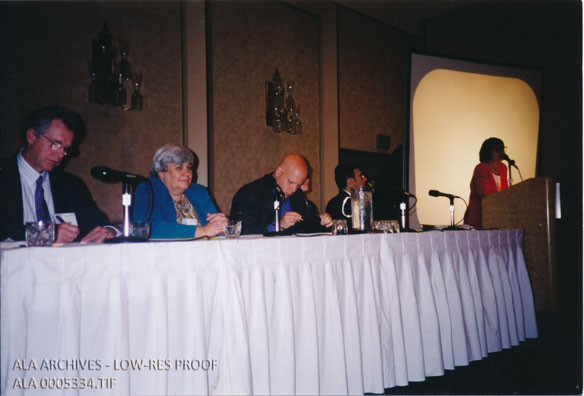 People sitting at the head table during Intellectual Freedom Round Table awards reception at the 1997 ALA Annual Conference.