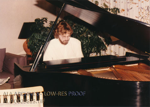 Photograph of Michael Hawley playing a piano Found in RS 22/3/6, Box 2, Folder: Photos - File - H