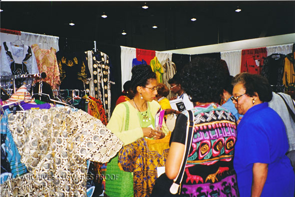 Conference attendees at the Bia-Maranatha clothing exhibit at the fourth National Conference of African American Librarians in Las Vegas.