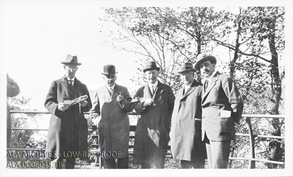 Group at Niagara Falls, including Thomas Gorrie, Henry Guppy, R. Farquharson Sharp, Frank P. Hill, and Vincenzo Fago, likely as part of a post-conference excursion with foreign delegates.