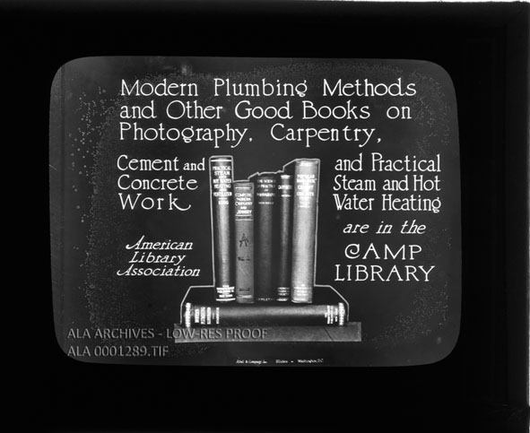 Modern Plumbing Methods and Other Good Books on Photography, Carpentry, Cement Work and Practical Steam and Hot Water Heating are in the CAMP LIBRARY | The American Library Association Archives