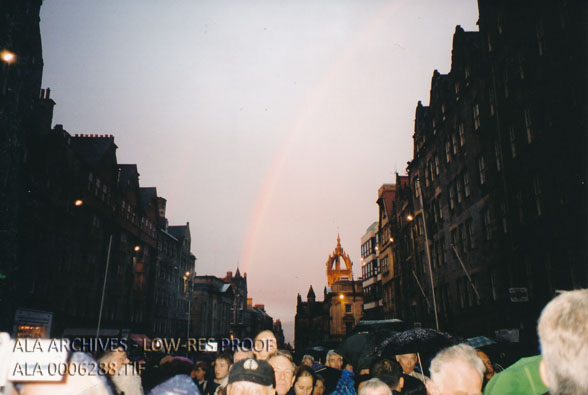 Photo of a rainbow over Edinburgh, Scotland taken while visiting for IFLA Glasgow.