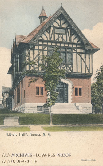 Postcard of the Aurora Free Library in New York. Published by Henry Morgan, Aurora, N.Y.
