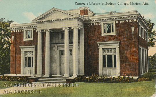 Postcard of Carnegie Library at Judson College in Marion, Alabama.