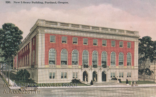Postcard of the Multnomah County Library in Portland, Oregon, after the building was constructed in 1913.