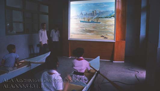 Children rowing at the Children's Palace in Shanghai, China. Caption on the slide reads: "Rowing Children's Palace"
