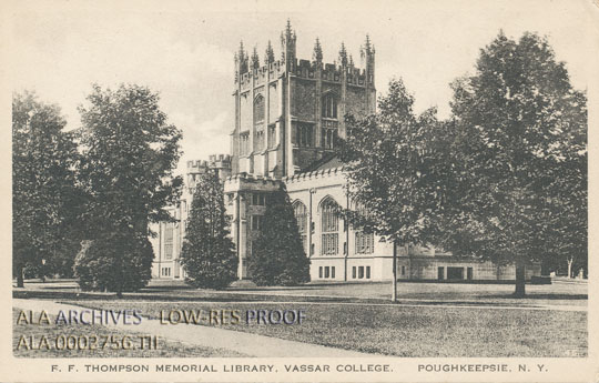 Postcard of the F.F. Thompson Memorial Library at Vassar College in Poughkeepsie, New York.