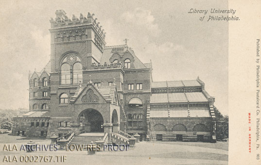 Postcard of the University of Philadelphia Library in Philadelphia, Pennsylvania.