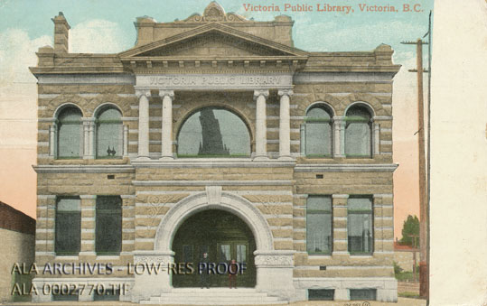 Postcard of the Victoria Public Library in Victoria, British Columbia, Canada.