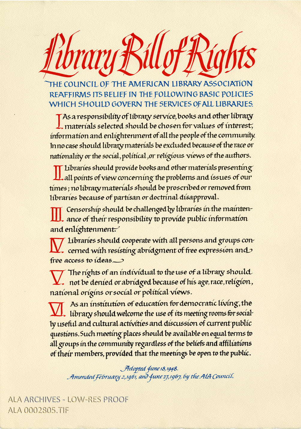 Library Bill of Rights | The American Library Association Archives