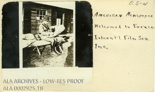 Caption on the side reads: "American Newspaper Welcomed in France Internt'l Film Ser. Inc."