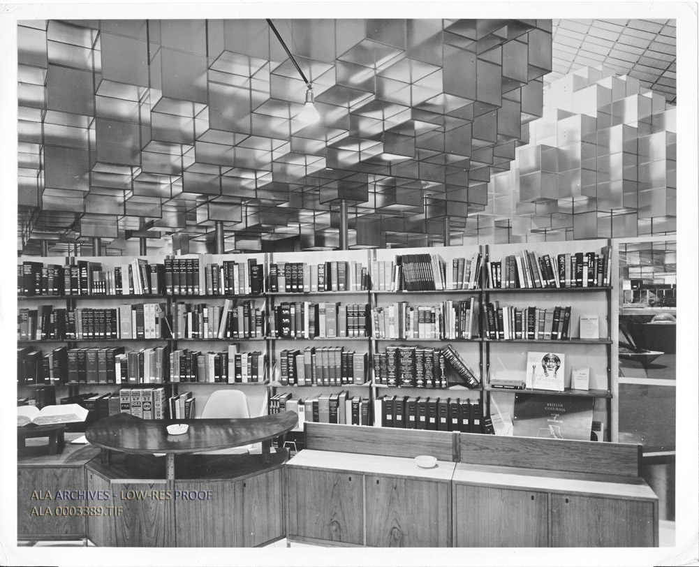 The Ready Reference Center of the ALA's Library 21 exhibit at the Seattle World's Fair in 1962.