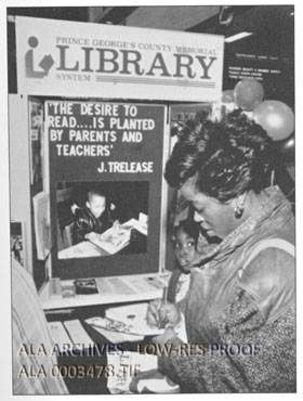 Caption reads: Registration in the area's largest shopping mall proved effective for the Prince George's County (Md.) Memorial Library.