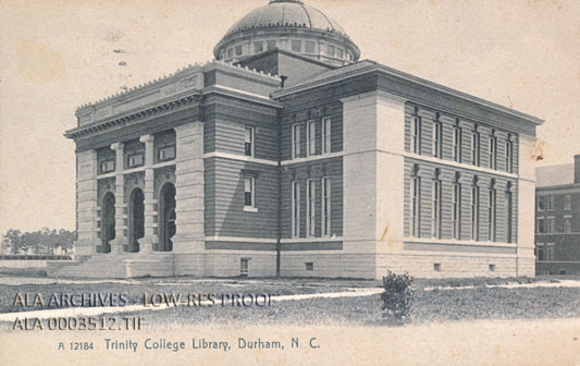 Postcard of the Trinity College Library in Durham, North Carolina.