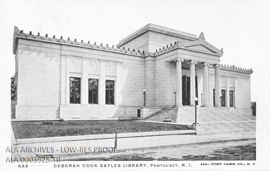 Postcard of the Deborah Cook Sayles Library in Pawtucket, Rhode Island.