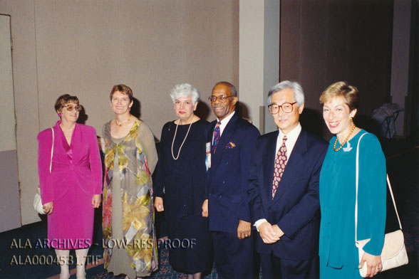Group at the Newbery-Caldecott Banquet at the 1994 Annual Conference, including Allen Say, Caldecott Medal winner, and Lois Lowry, Newbery Medal winner.