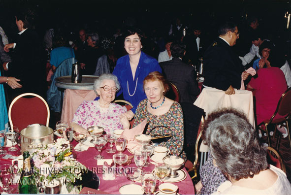 Photograph of Mildred Batchelder, Susan Roman, and Zena Sutherland at the 1987 Newbery-Caldecott Banquet.