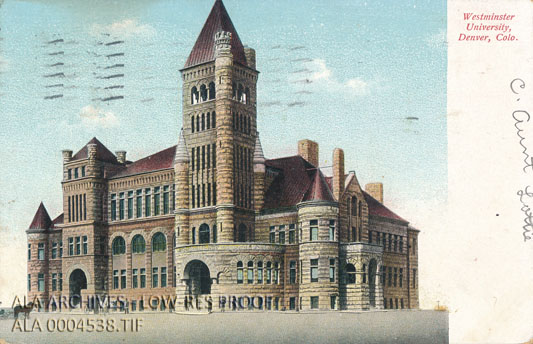 Postcard of Wesminster University in Denver, Colorado. Postcard was mailed on September 13, 1910.