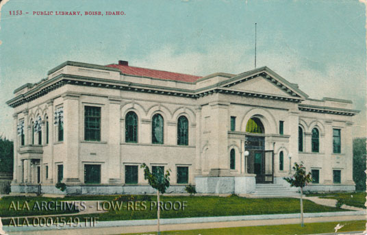 Postcard of the Public Library in Boise, Idaho. Postcard was mailed on December 20, 1909.