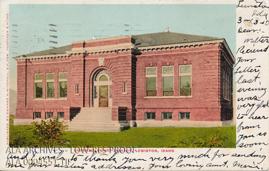 Postcard of the Supreme Court Library in Lewiston, Idaho. Postcard was mailed on March 13, 1910.