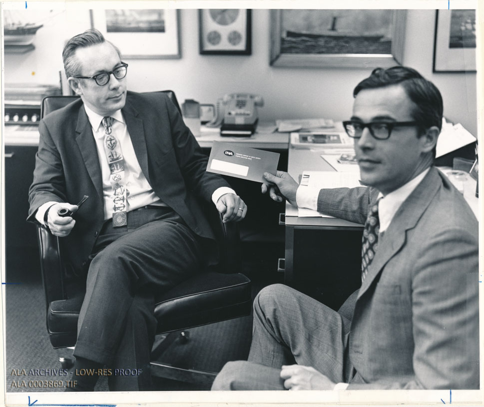Photograph of Charles Robinson, former Public Library Association President (1984-85), with an unidentified individual.