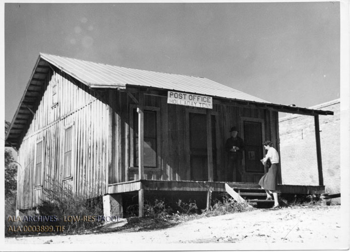 Photograph of librarian carrying books to the Holladay Post Office in Tennessee.