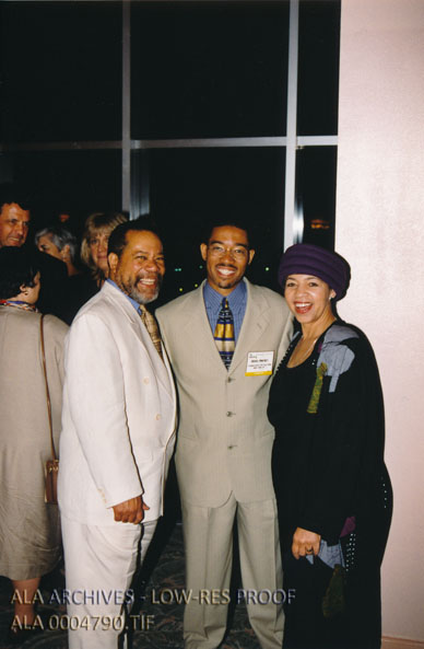 Caldecott honoree Brian Pinkney with Jerry and Gloria Jean Pinkney at the 1999 Newbery-Caldecott Banquet.