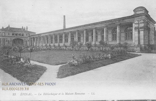Postcard of the library at the Maison Romaine in Epinal, France.