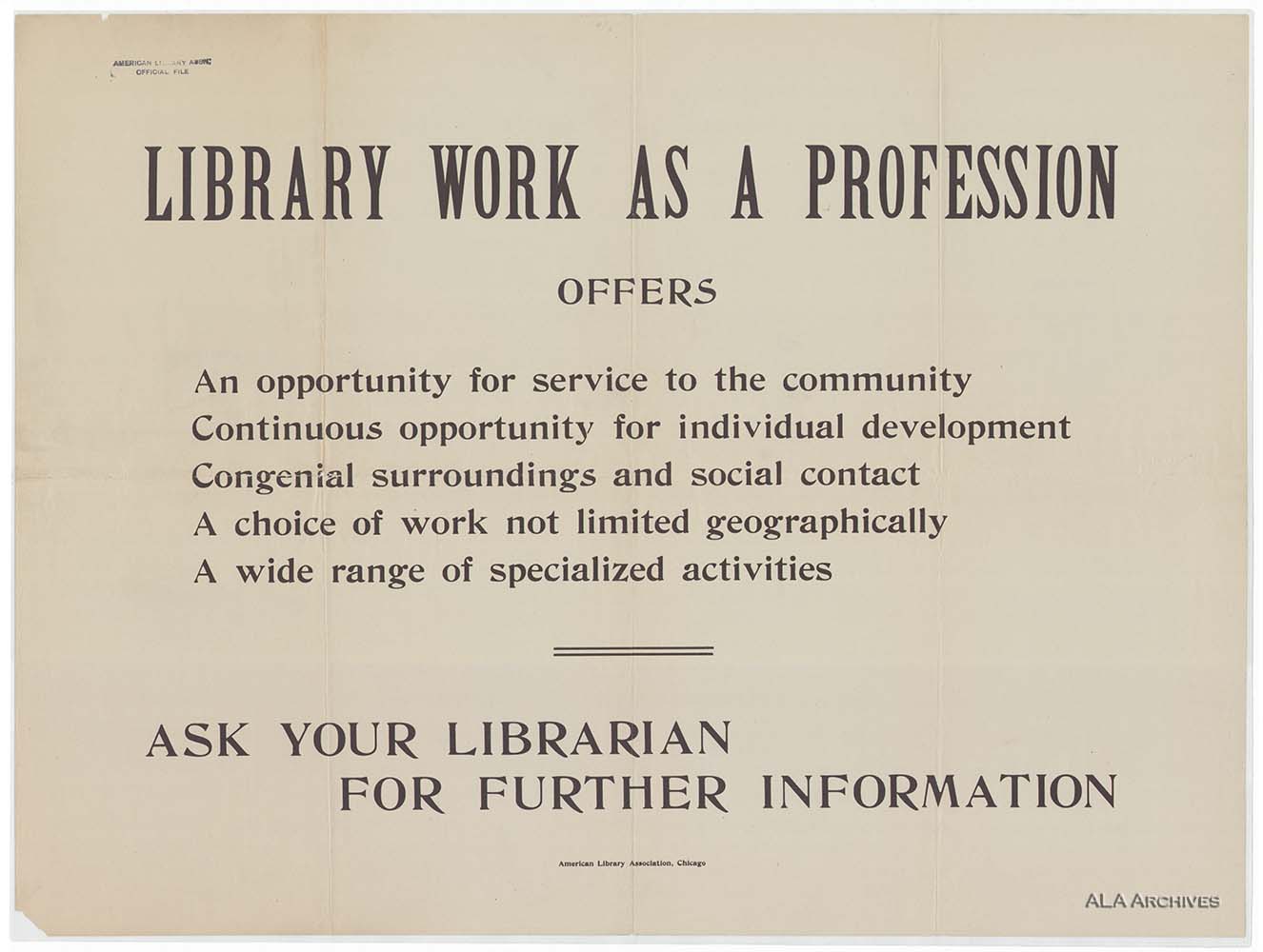 Library Work as a Profession | The American Library Association Archives