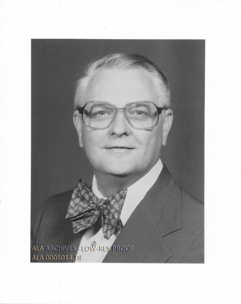 Portrait of Edward G. Holley, dean of the School of Information and Library Science at the University of North Carolina at Chapel Hill and former ALA President, 1974-75.