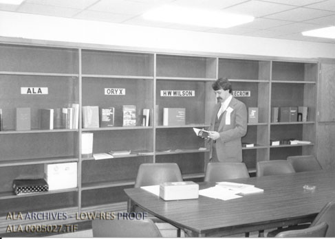 Man reading a book at the Book Exhibit for the Library History Seminar VII at the University of North Carolina at Chapel Hill.