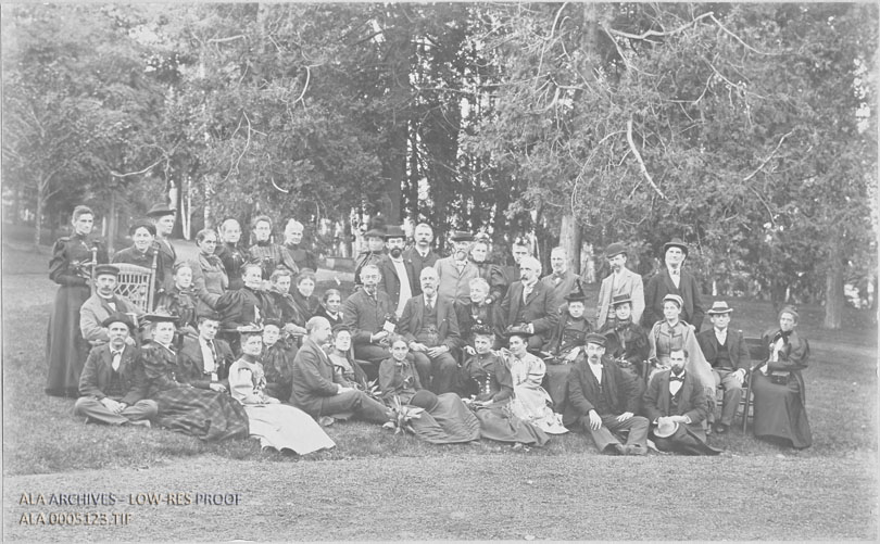 Group photograph of conference attendees from the 1894 ALA Annual Conference at Lake Placid.