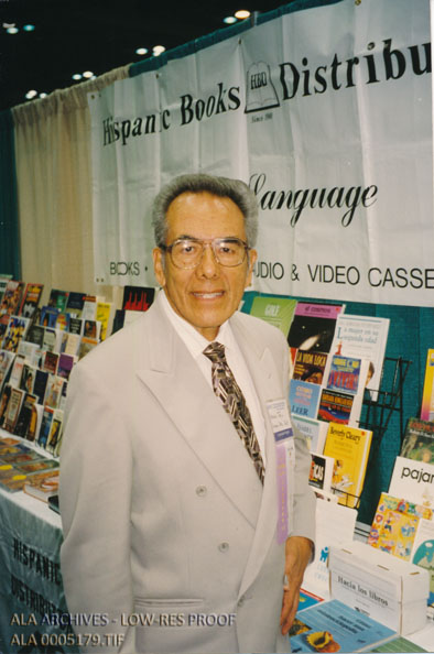 Arnulfo Trejo at the exhibit hall of the REFORMA conference.