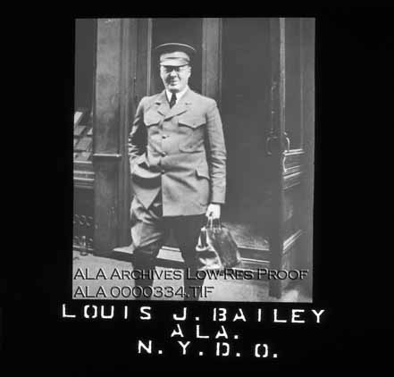 Glass plate slide portrait. Caption reads: "Louis J. Bailey ALA. N. Y. D. O."