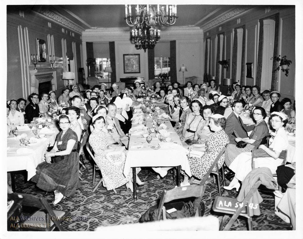 Hospital Libraries Division luncheon during the ALA Annual Conference in Minneapolis. Sadie Peterson Delaney is pictured in the back right corner.